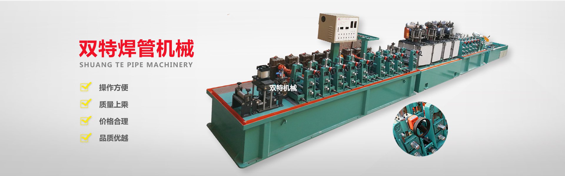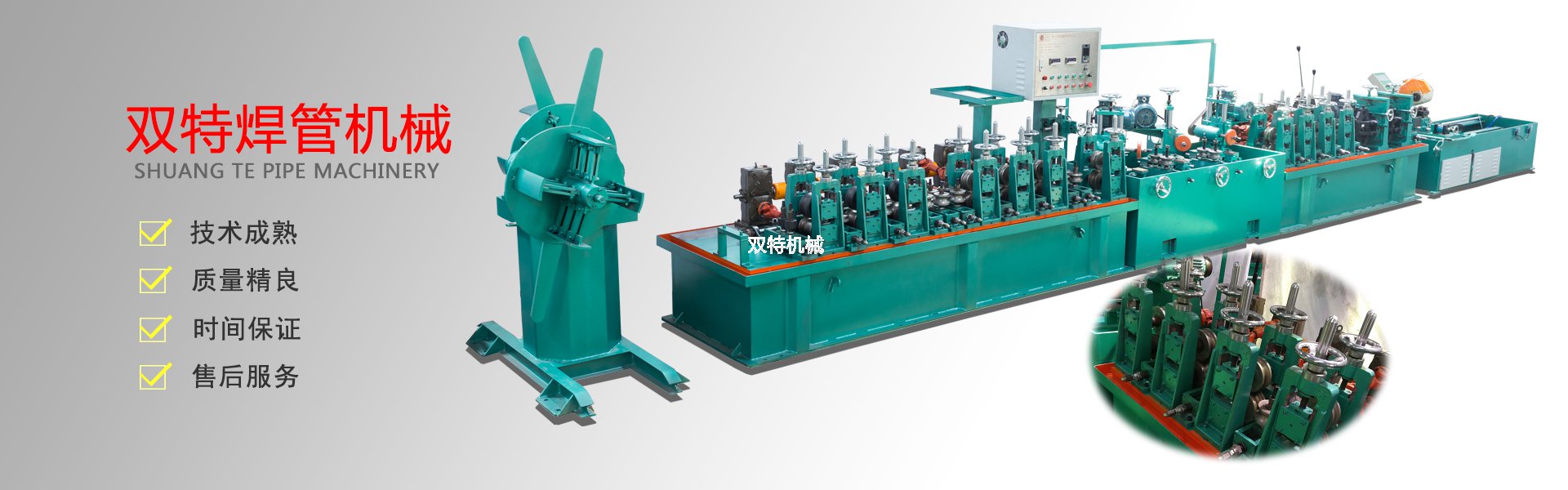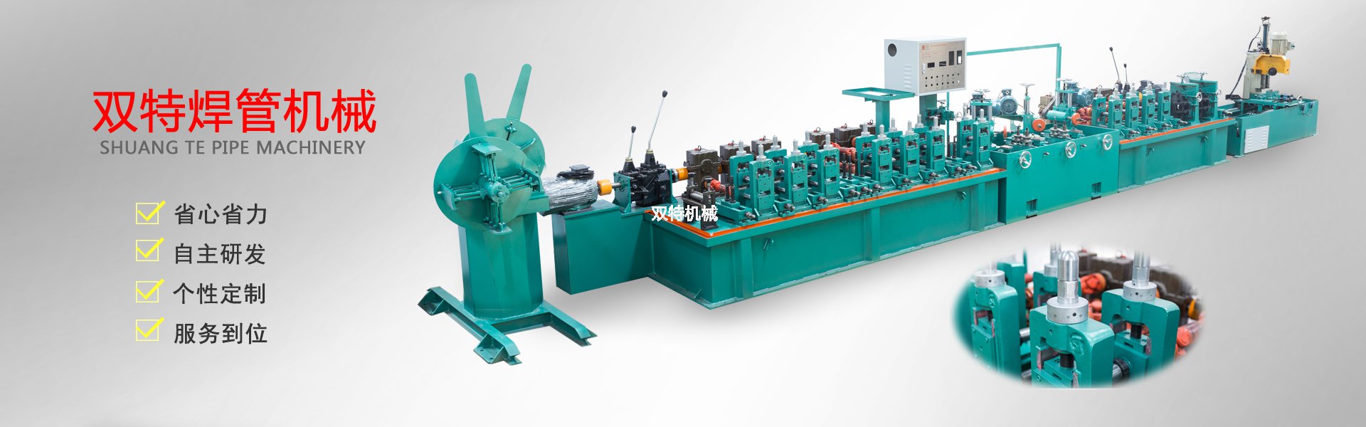 佛山市雙特機(jī)械科技有限公司是一家不銹鋼制管機(jī)生產(chǎn)廠家、公司產(chǎn)品有:不銹鋼飲用水管制管機(jī)、不銹鋼制品管制管機(jī)、高頻焊管機(jī)、不銹鋼拋光機(jī)、在線光亮固溶退火設(shè)備、不銹鋼焊管機(jī)內(nèi)外在線整平裝置、復(fù)合管機(jī)及其它配套設(shè)備。本公司奉行“以技取勝、精益求精”的企業(yè)理念,以“科學(xué)、嚴(yán)謹(jǐn)、創(chuàng)新”的工作方式,開拓進(jìn)取。以敏銳的市場觸覺探索業(yè)內(nèi)流行方向資訊,以市場需求為導(dǎo)向,以客戶為中心,用優(yōu)質(zhì)的產(chǎn)品,優(yōu)質(zhì)的服務(wù)為不銹鋼行業(yè)的發(fā)展和繁榮,做出更大的貢獻(xiàn),并熱忱歡迎社會(huì)各界人士加盟雙特,共創(chuàng)美好明天!