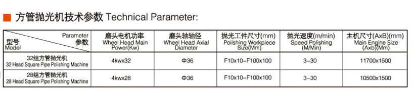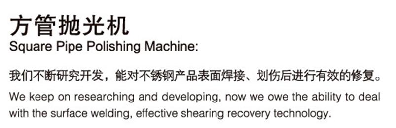 方拋光機管適用于正方形和矩形截面的各種金屬外表面的拋光。整機由拋光主機、給料裝置、出料裝置和控制系統(tǒng)四部份組成。方管拋光機根據(jù)拋管范圍和配置不同可分為基本型拋光機和高配型方管拋光機。根據(jù)拋光頭的數(shù)量不同又分為28頭、32頭、36頭方拋光機。經(jīng)該機拋磨后,表面粗糙度可達500#-700#。